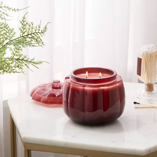 WARM CIDER AND CINNAMON Lidded Glass Pumpkin Jar Candle - Threshold™ | Vela de 2 mechas 20 oz