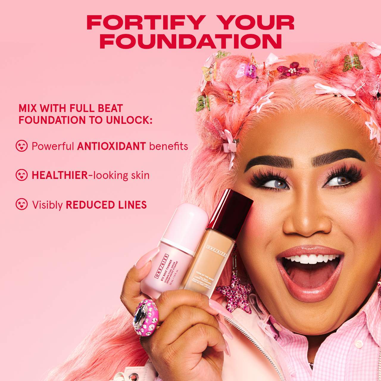 Qué es: Un medio de mezcla perlado y un suero que transforma la base y revitaliza la piel, potenciando la luminosidad tanto de inmediato como con el tiempo.