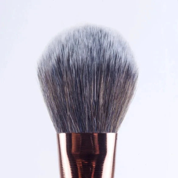Brocha plana de fibras de NYLON suave con punta curva. Aplica y difumina productos en polvo en el rostro.