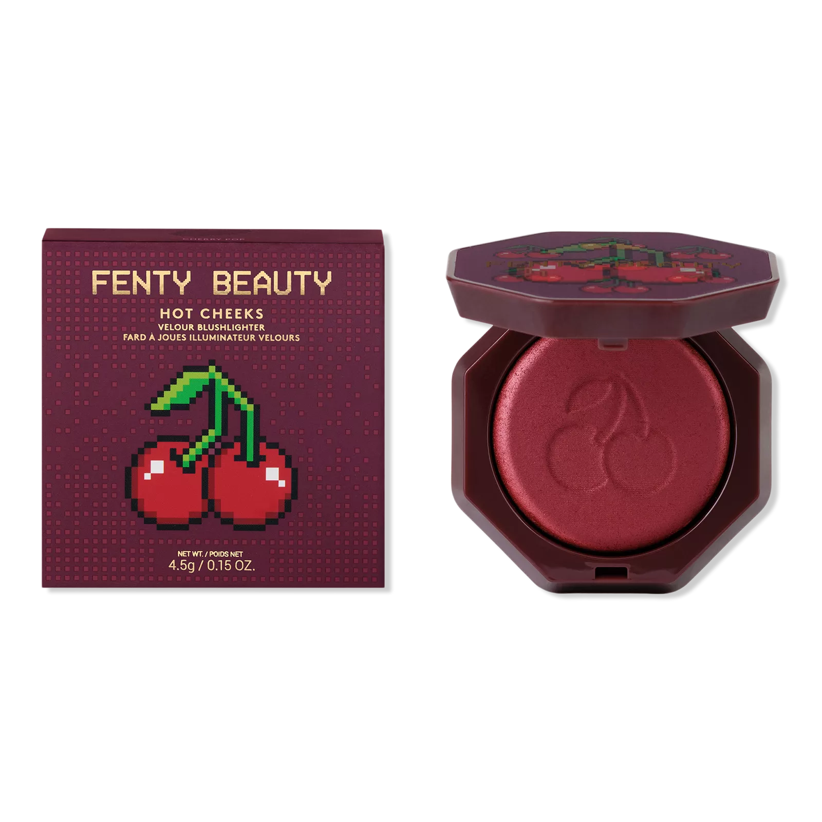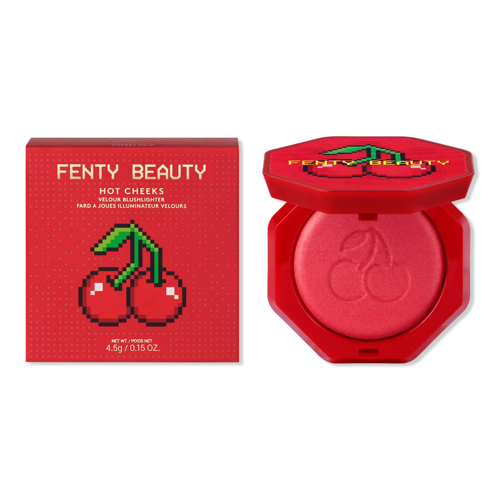 Experimenta con un rubor e iluminador de edición limitada: Hot Cheeks Velour Blushlighter. Dale a tus mejillas un toque de color rojo cereza mientras iluminas tu rostro. Realza tu belleza con este polvo ruboroso y disfruta de un aspecto radiante y fresco.