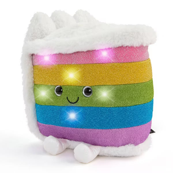 Ilumina el mundo de tu hijo con el pastel arcoíris de peluche LED con sonido FAO Schwarz® Glow Brights. Este adorable peluche de 28 cm no solo es suave y tierno, sino también interactivo, diseñado para deleitar con luces LED integradas y divertidos efectos de sonido. Al abrazarlo, el pastel se ilumina y reproduce la clásica melodía "The Entertainer", añadiendo un toque mágico a la hora de jugar. Con un pelaje brillante y resplandeciente, este peluche es tan atractivo como abrazable. Su práctico apagado automático lo hace perfecto para momentos de abrazos tranquilos a la hora de dormir. Ideal para niños de todas las edades, este peluche ofrece comodidad y alegría en un encantador paquete.